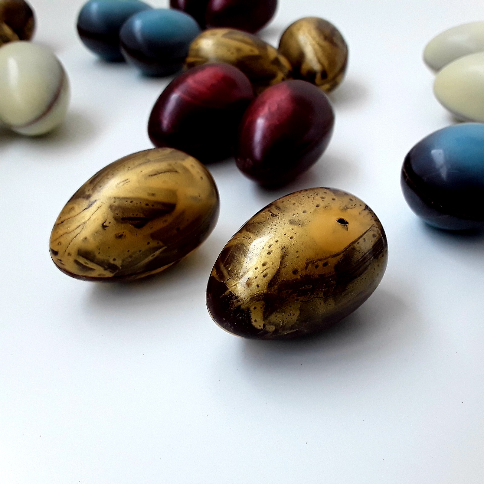 В пасхальный набор вошли самые весенние вкусы от Bon Gemma: "Золотое Манго", "Hot Смородина", "Нежная Малина", "Кофейная", "Зефирная" и "Марципановая". А еще три вида трюфелей: «Воздушный», «Ромовый» и «Сливовый».